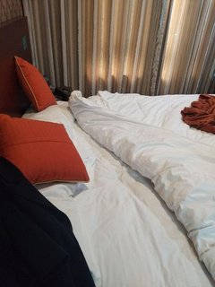 果断续住了一天,顺便去旁边美食街逛了下,人很多,热热闹闹的,回来后,客房在做续住卫生,主动打了招呼,给换了床单和被套,补齐了物品,做了卫生,离开时客客气气的,住的很值得,性价比真心高