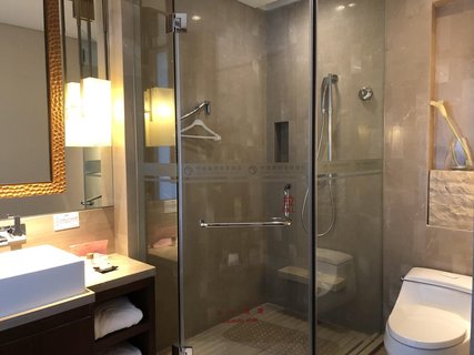 酒店环境很好,下沉花园像一个小公园,不算大但是细节做的比较到位,酒店前台服务很热情,前台石浩伟先生看我带着俩娃和老人,主动帮我协调同一楼层房间,让我们尽量住的近一点,非常感谢他!房间整体不错,就是卫生间地面有点滑,有水溅在地上一定小心不要滑倒!客服服务一早上就来清理垃圾和补水,比别的酒店服务都早,其实这点挺好的,让房间能随时保持清洁,总之很不错的选择,老人和孩子都挺开心??