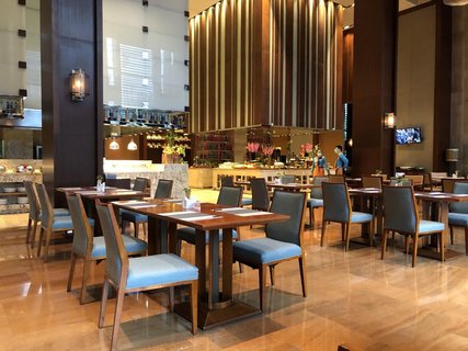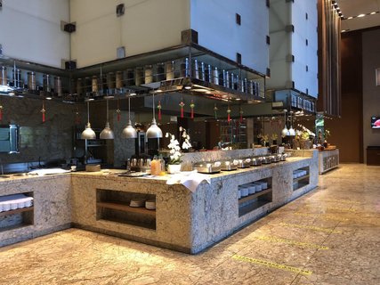 酒店早餐种类和口味还是不错的 且酒店不会因为快到早餐收场时间就停止或不更新食物 这点特别好 早餐的口味适中 能找到适合孩子吃的粥 谷物类 食物。