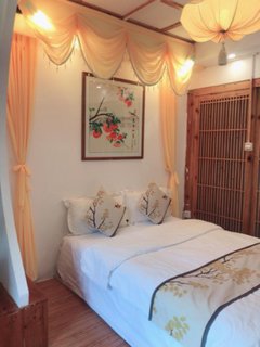 院子比网上好看的多,很喜欢,以前就跟老婆出差来这住了一晚,这次老板才装修好,院子和房间好清新,老板是东北的很热情好客,会一直光顾