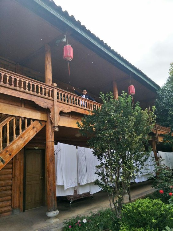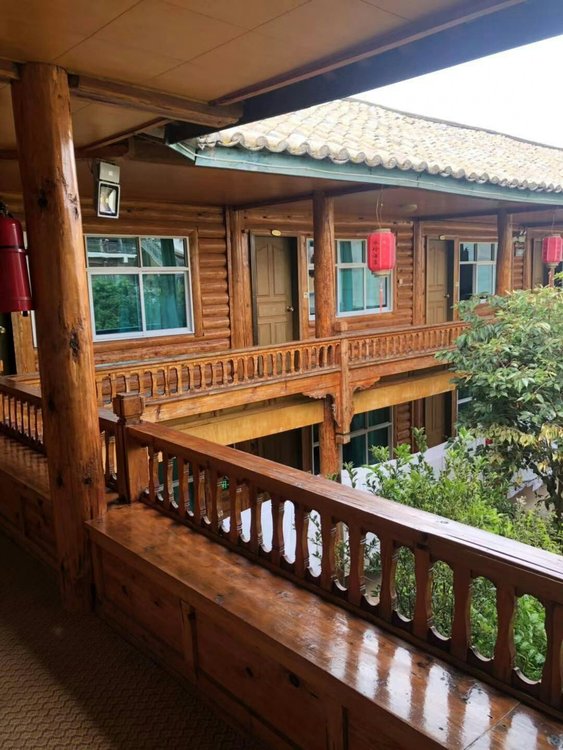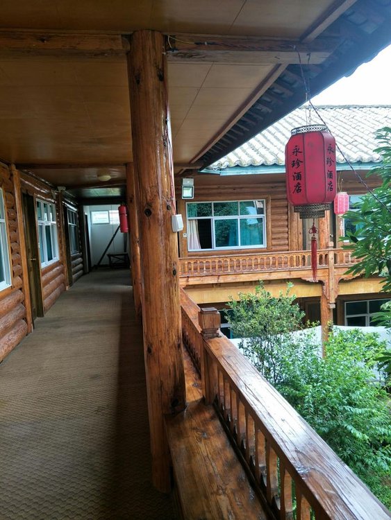 酒店就在大落水村,在湖岸100米,算是中高档的招待所级别吧,床够大,带孩子不用担心,老板自家有餐厅,吃正饭和早餐很方便,院子可以停车,篝火晚会就别参加,虽然只有30元 ,但还是觉得很扯淡