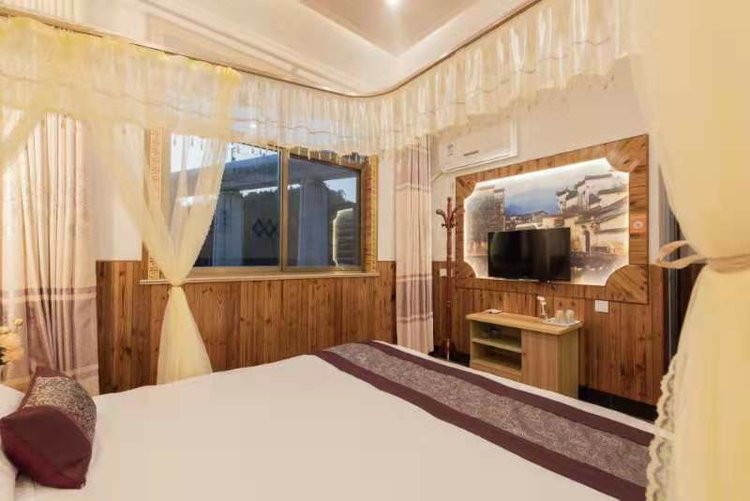 房间中式的设计风格很喜欢,床柔软舒服,睡得很好。独立的卫生间,很大,住的舒服。这里周边环境优美,空气清新,像回家一样,很棒的入住体验