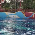 泳池的水看起来还挺干净的,树叶??会久不久的有人用捞网来清理一下,泳池挺大的,分了浅水区和深水区,浅水区1米的小孩站下去没有问题,水的位置大概在小孩胸的位置。更衣室里还有桑拿,但因为带着孩子不方便,所以没有去体验。