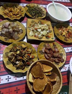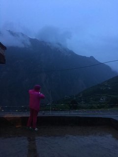我们一行九人,五大四小,分别是四家人,该酒店在甲居藏寨里面,虽然车不能直接开到客栈门口,但停在不远的篮球场,正是这样才有原生态的味道,店小二是个漂亮的臧家小妹,和老板娘是位朴实的臧家大姐,80元每床位,包早晚餐,实惠,而且大姐的手艺很不错,客栈的屋顶上还可以一览藏寨的大部分景色,值得来,强力推荐