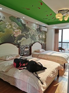 一个人出来玩,在网上看房,眼睛都看花了,最终选择这家,挺好的。位置便利,离景区很近,旁边是汽车站反正交通什么的是很方便了,楼下有停车场。房子在一个公寓楼里面,整栋好像都是民宿酒店客栈这种,环境还可以,房子在12楼视野很好采光也很好。