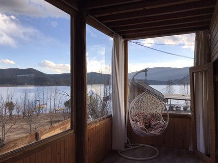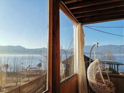 门口就是个小码头,风景很不错,就在湖边但十分清静。家庭房很适合一家三口,玻璃窗视野好,淡季性价比真的很高。老板也十分热情好客,总之是家庭自驾的不错选择。