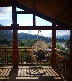 环境不错,花园长满了好看的花,比较幽静,因为在山坡上,离路边有一段距离,我住的独栋别墅,有个大阳台可以看湖景可以晾衣服,下面可以停车很方便,下面有个小餐厅早上还有早餐吃,价格很实惠,店家服务态度好。