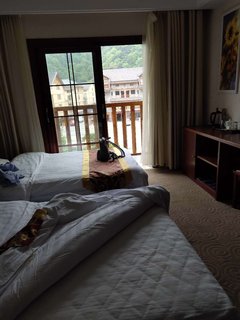 很棒的一次体验,酒店环境优美,周围环境也很美,特别喜欢门口的红豆杉盆景,还有房间的大阳台,清晨在阳台看着青山如黛,呼吸新鲜的空气,太美妙了。
