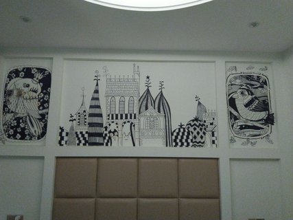 离标志门走路10多分钟,挺方便的,床很大装修很别致。需自带洗漱品