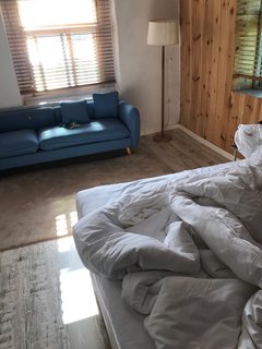 房间卫生没做好,马桶很脏,沙发上杂物多,反应后美女妹妹马上安排清理!格调简单,有个院子晒晒太阳还不错,