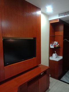 前台服务态度很好,卫生干净,很方便下楼就可以吃东西还有一个稍大一点的超市,还有电影院