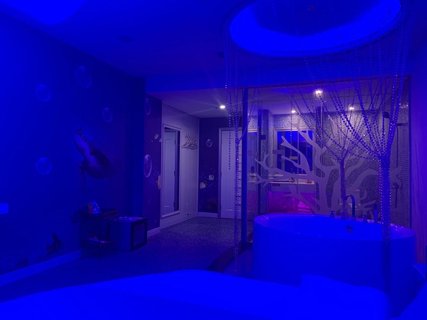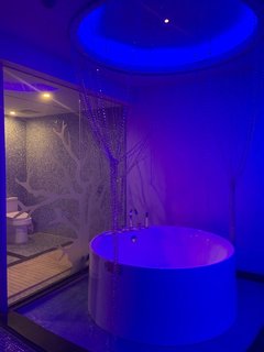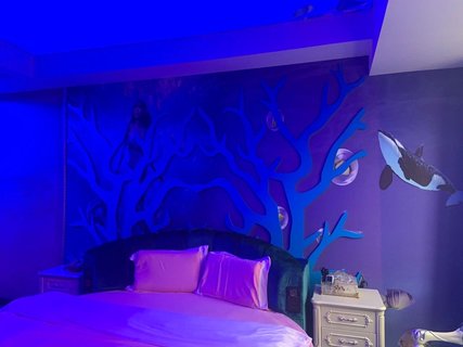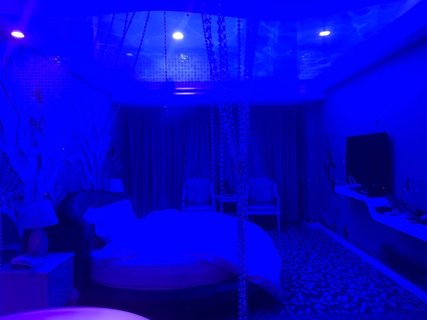 这个酒店的主题房很好看,特意每一个房间都让服务员带我看了一遍,我最喜欢紫色浪漫和蓝色海洋这两个房间,很有情调!