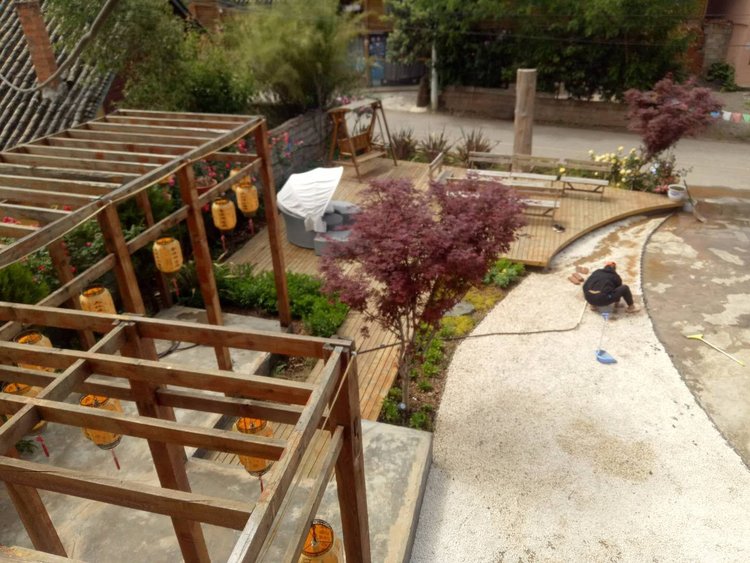 第二次住这个客栈,觉得很不错。因为经常是一个人独自旅游,喜欢清净独处,这个小院给了我一个角落静静的喝茶、阅读。昨天下雨,也听到雨滴落入鱼池的声音。今天下午要走时,雨停了,院里花木感觉格外醒目。