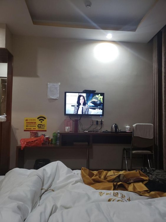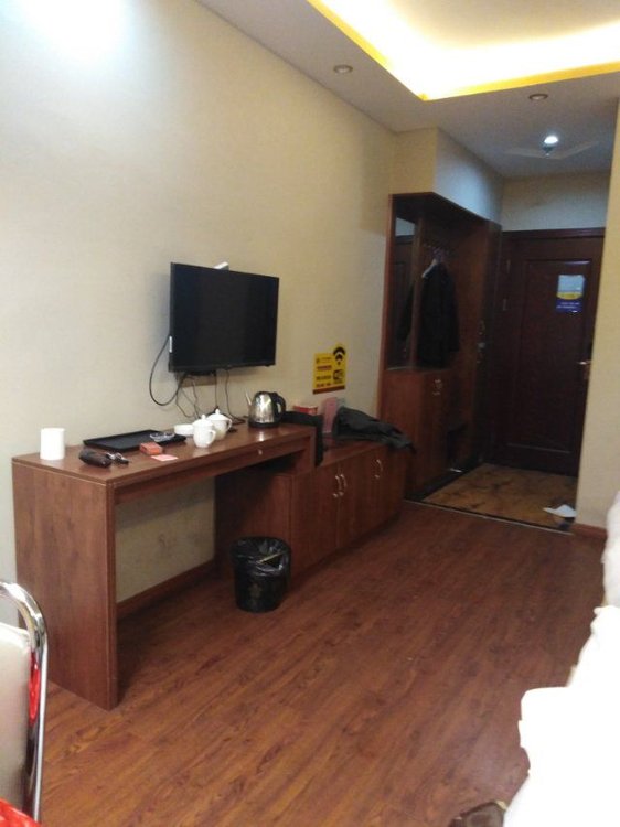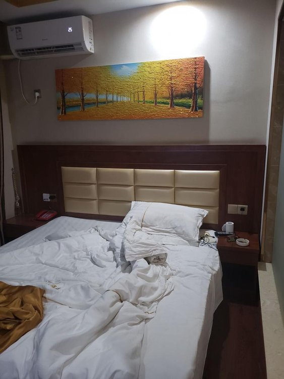 先说价格吧,128的房间,在本地已经算中等偏上的价格了,但是房间还没有100的华侨一半好(特价88),兰欧价格差不多,比这里好了无数倍,这宾馆的房间:枕头上有血印,床单也有不知道什么的印子,床的质量就不说了,睡10分钟就腰疼,而且厕所只要一进去就能闻到非常恶心的味道,空调就是个摆设,无用,靠近电视下面的插座都是摆设,没通电。最主要的是把灯一关,非常的压抑,空调噪音,外面的噪音简直让人无法入睡,晚上11点30回的宾馆,凌晨3点30我就退了房,根本待不住。在网吧通宵、睡车里都比在这个宾馆呆着舒服!!!!简直就是受罪,住在棺材里面一样!!!住了这么多酒店宾馆,第一次躺了几个小时,皮肤就明显出现了问题,大家真别去!!!